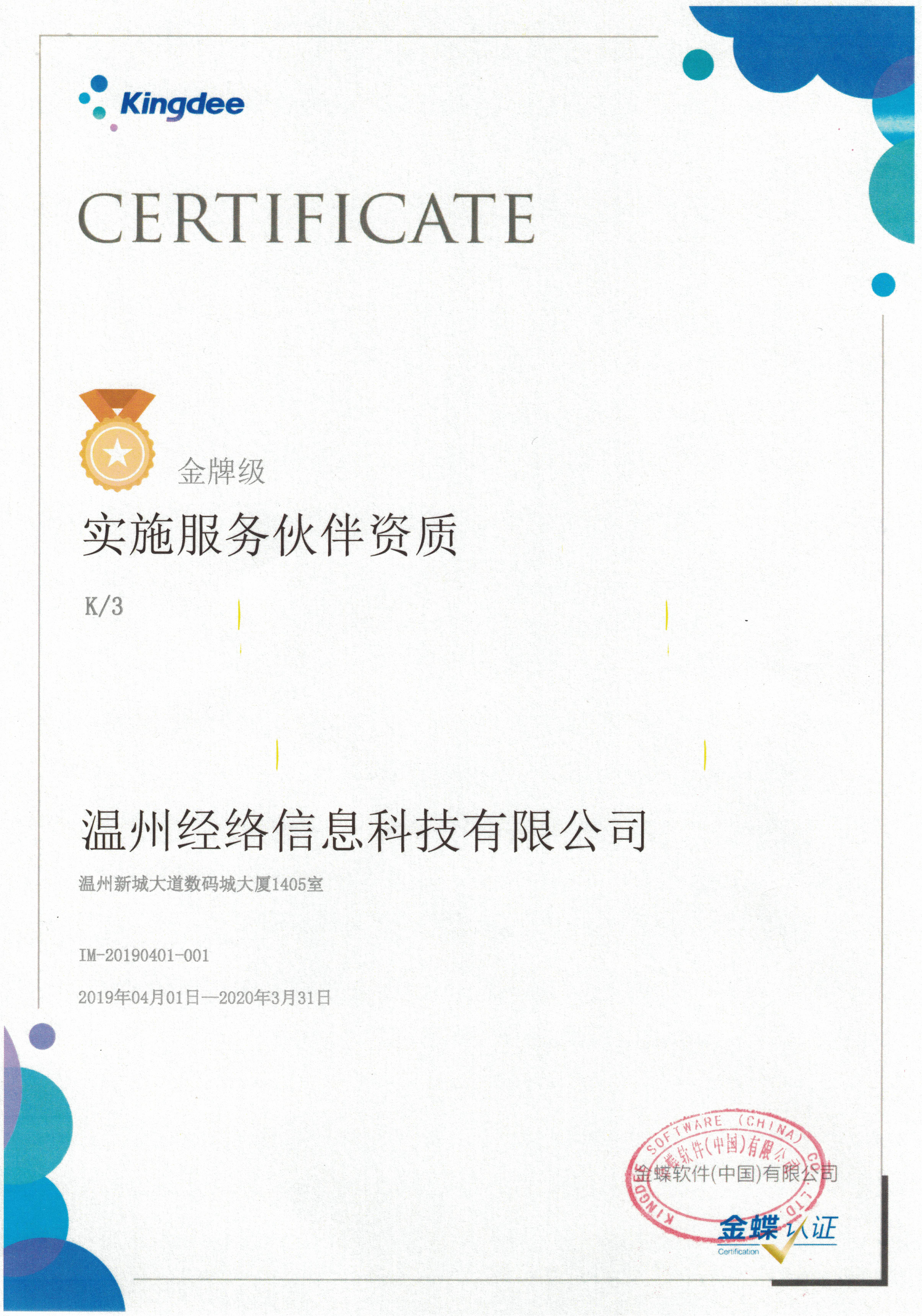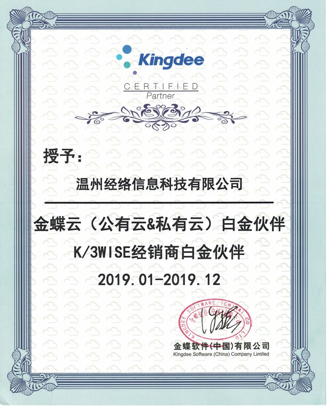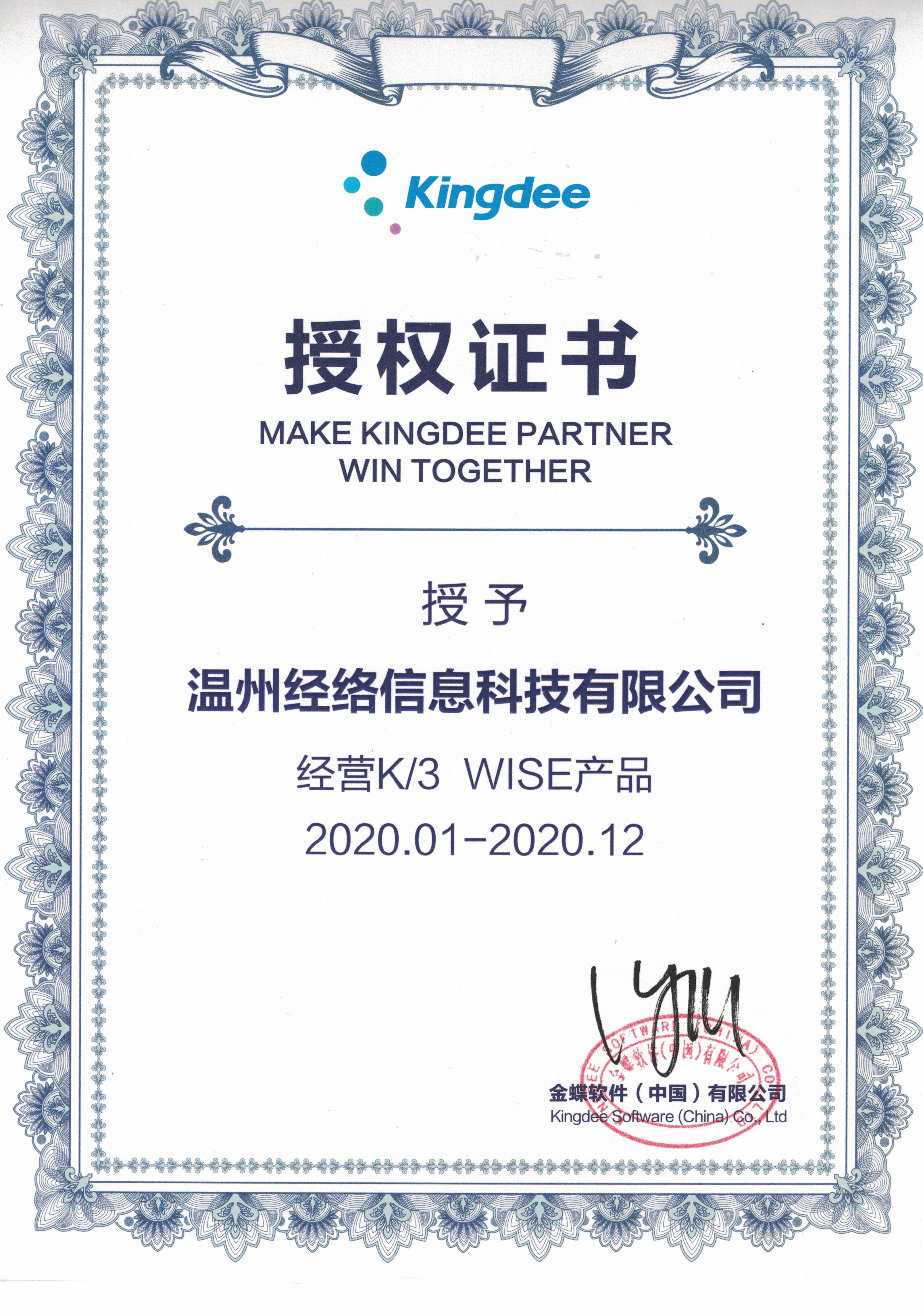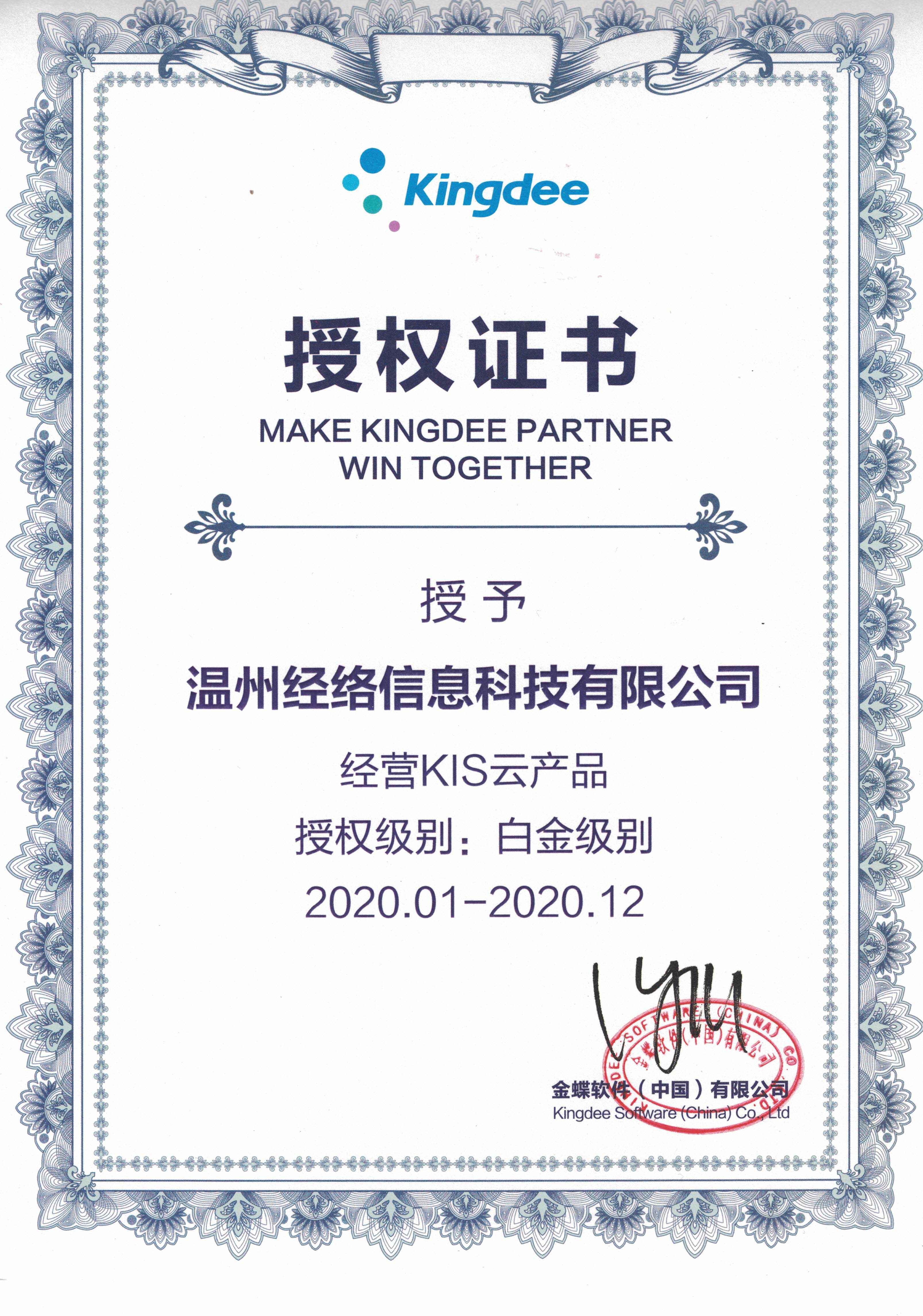 溫州經(jīng)絡(luò)信息科技成立于2008年,是一家專注于企業(yè)管理軟件開發(fā)及管理咨詢的高科技企業(yè)。我公司是金蝶軟件溫州地區(qū)白金合作伙伴、四星服務(wù)伙伴,負(fù)責(zé)溫州地區(qū)金蝶軟件產(chǎn)品銷售、軟件實施培訓(xùn)和售后服務(wù)。公司主營財務(wù)軟件、進(jìn)銷存軟件、生產(chǎn)管理軟件、ERP管理軟件、車間MES管理系統(tǒng)等企業(yè)管理軟件,為溫州企事業(yè)單位提供完整的信息化解決方案。