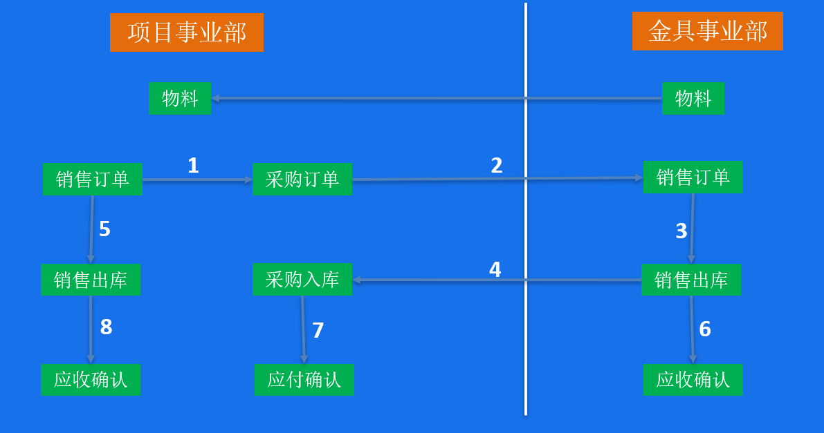 銷售流程:銷售訂單——>發(fā)貨通知——>銷售出庫(kù)——>應(yīng)收(自動(dòng)產(chǎn)生內(nèi)部交易相關(guān)單據(jù))