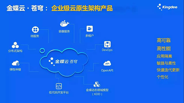 在平臺方面,金蝶云·蒼穹作為中國首款基于云原生架構(gòu)的企業(yè)級云服務(wù)平臺,採用了分布式架構(gòu),獨創(chuàng)了KDDM云端動態(tài)領(lǐng)域模型,支持云端個性化定制,通過低代碼、輕量級的開發(fā)平臺,能夠大幅縮短大企業(yè)創(chuàng)新研發(fā)周期。在架構(gòu)方面,金蝶云·蒼穹,以敏捷的前臺實現(xiàn)智慧賦能,以共享的中臺實現(xiàn)智能運營,以創(chuàng)新的后臺實現(xiàn)數(shù)據(jù)驅(qū)動,基于中臺架構(gòu)思想,不僅使人、企業(yè)、設(shè)備都能通過“數(shù)字孿生”實現(xiàn)“企業(yè)數(shù)字化”,更實現(xiàn)全行業(yè)互聯(lián)互通,達成“產(chǎn)業(yè)平臺化”。