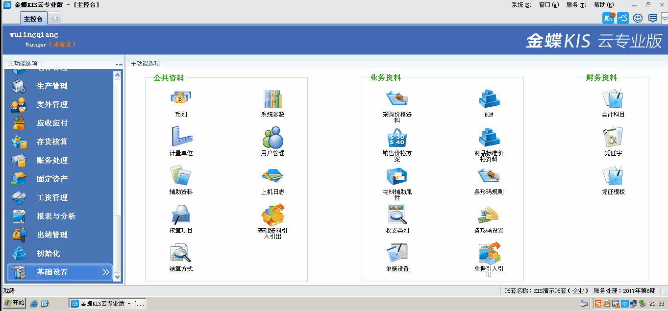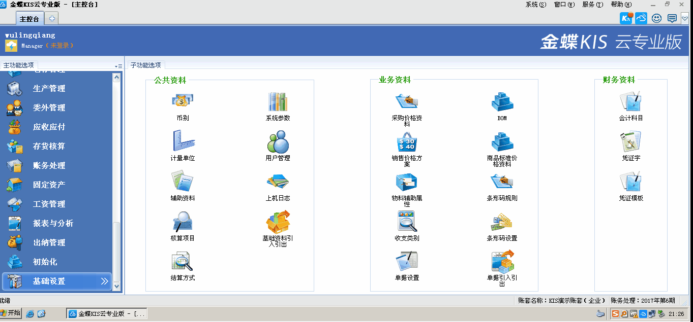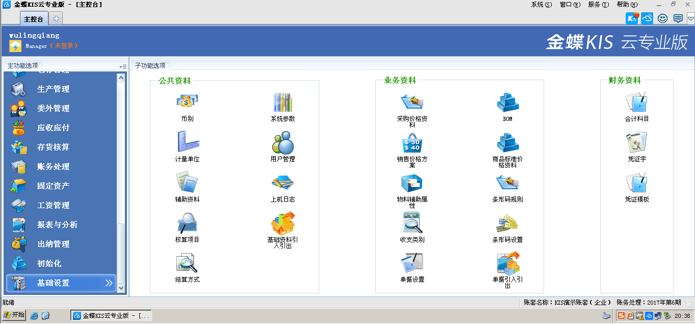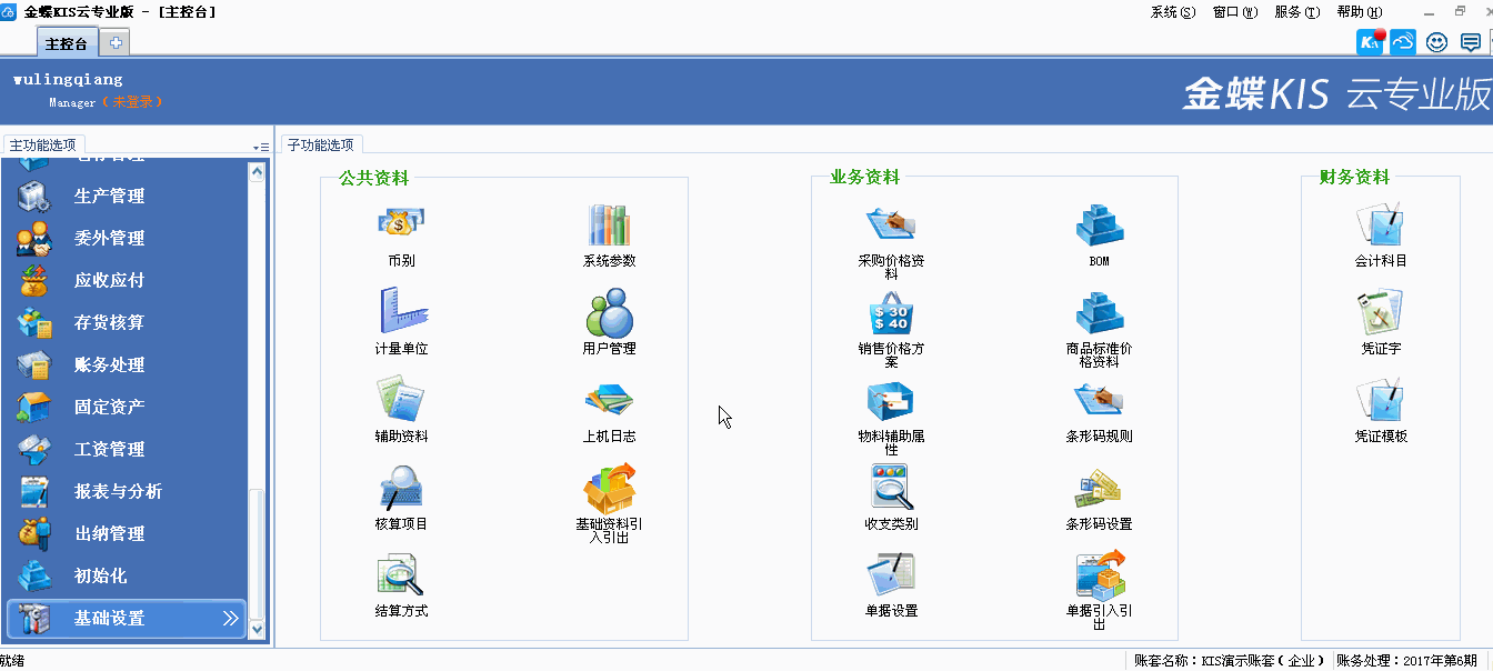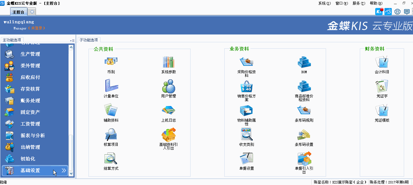 步驟一、在全部核算項(xiàng)目界面,然后單擊【物料】,點(diǎn)管理