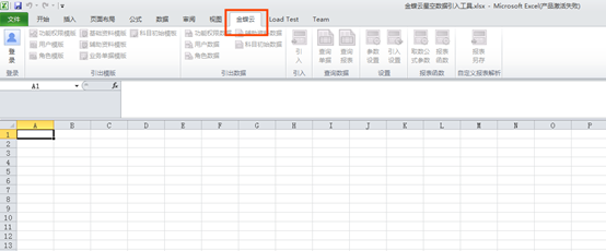 第二步:點擊【金蝶云星空數(shù)據(jù)引入工具】或任意Excel文件來打開該工具,在打開的Excel中可以看到一個【金蝶云】頁簽。